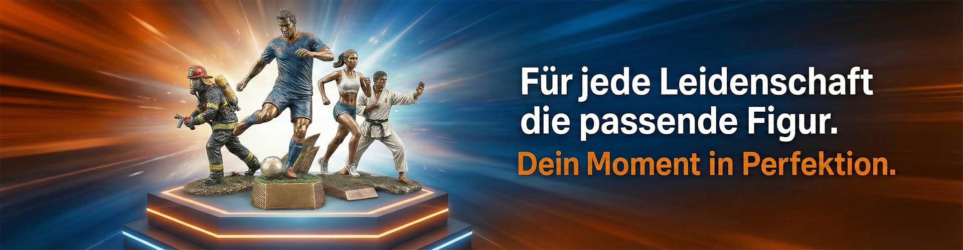 Ihre Firmenjubiläen und Turniere sind anspruchsvoll und herausragend – genau so sollten auch Ihre Auszeichnungen sein. Unsere Jadeglastrophäen und Pokale, versehen mit einer passenden Gravur und verpackt in edlen Boxen, entsprechen genau diesen hohen Ansprüchen. Nutzen Sie die Gelegenheit, um verdienten Mitarbeitern oder langjährigen Kunden "Danke" zu sagen. Trendpokale.de ist Ihr Partner, wenn es darum geht, Events und Veranstaltungen durch personalisierte und qualitativ hochwertige Awards unvergesslich zu machen. Setzen Sie neue Maßstäbe bei der Ehrung von Geschäftspartnern. Auch für sportliche Wettkämpfe bieten wir die passenden Figuren: Von Fußball und Handball über Schwimmen und Rudern bis hin zu Golf oder Tanzsport. Werten Sie die Übergabe von Urkunden und Medaillen mit unseren thematisch passenden Sportfiguren auf und belohnen Sie herausragende Leistungen gebührend.
