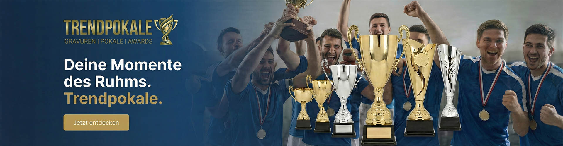 Machen Sie Ihre Ehrung zu einem Unikat. Wir bieten Ihnen nicht nur Produkte, sondern eine kompetente Beratung durch unsere qualifizierten Mitarbeiter. Erst durch eine personalisierte Gravur in Top-Qualität wird Ihre Auszeichnung zum strahlenden Mittelpunkt auf jedem Event. Suchen Sie nach Acryl-Awards, Büsten berühmter Persönlichkeiten, Jadeglas-Trophäen oder klassischen Sportfiguren? Testen Sie Trendpokale.de. Rücken Sie Ihren Verein, Ihre Firma oder Ihre Organisation ins rechte Licht, indem Sie verdiente Mitarbeiter und besondere Menschen mit unseren Trophäen auszeichnen.